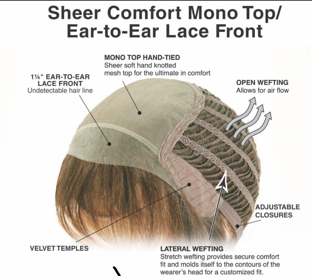 | 100% Modacrylic Synthetic Effortless™™ Fiber (Do Not Apply Heat) | Sheer Comfort Mono Top/Lace Front