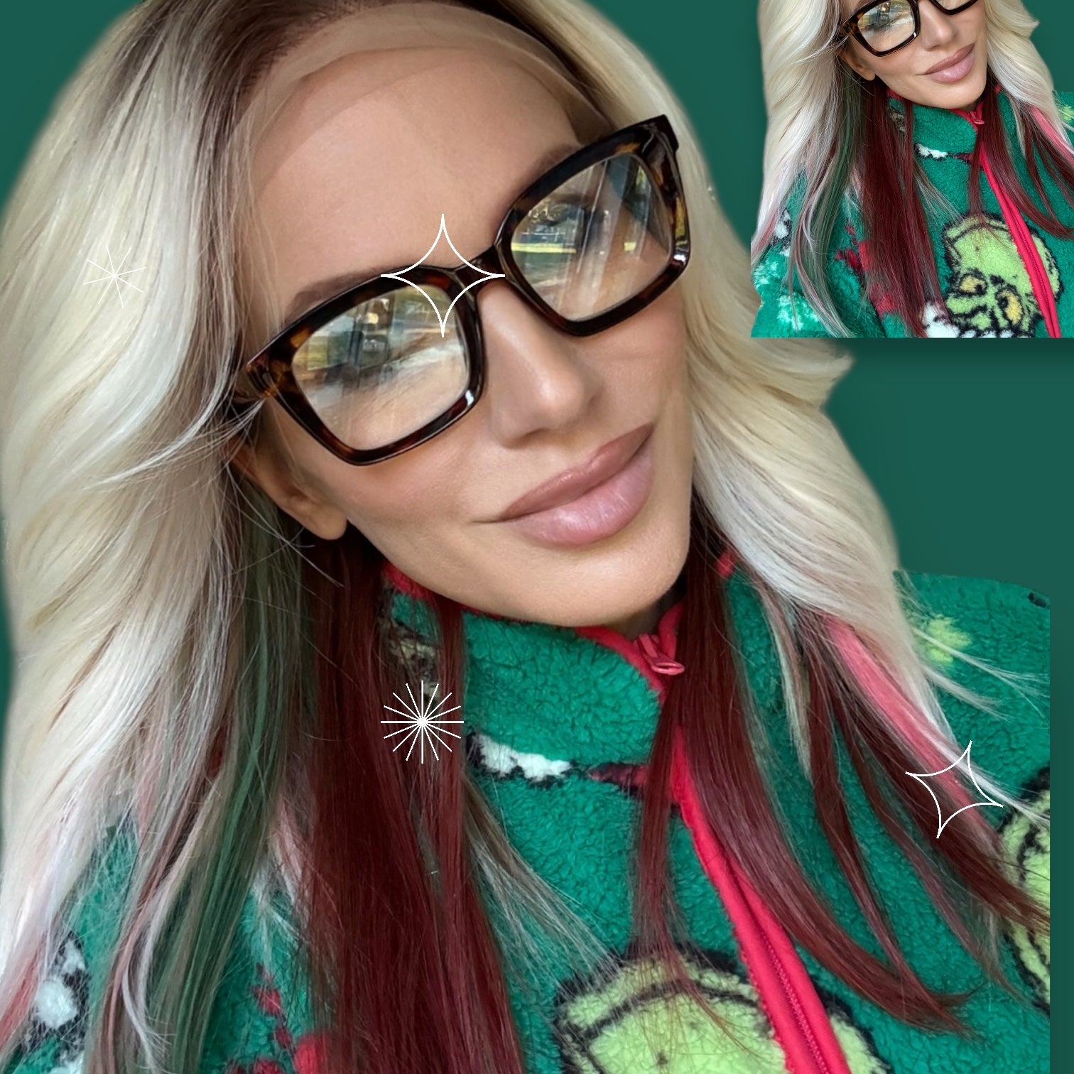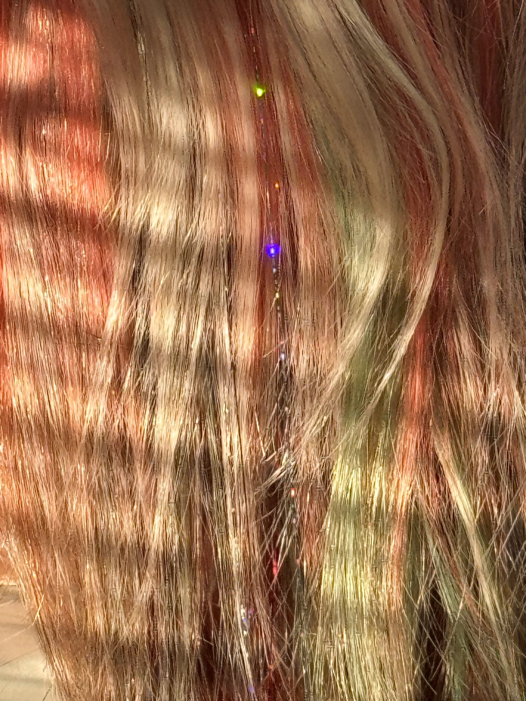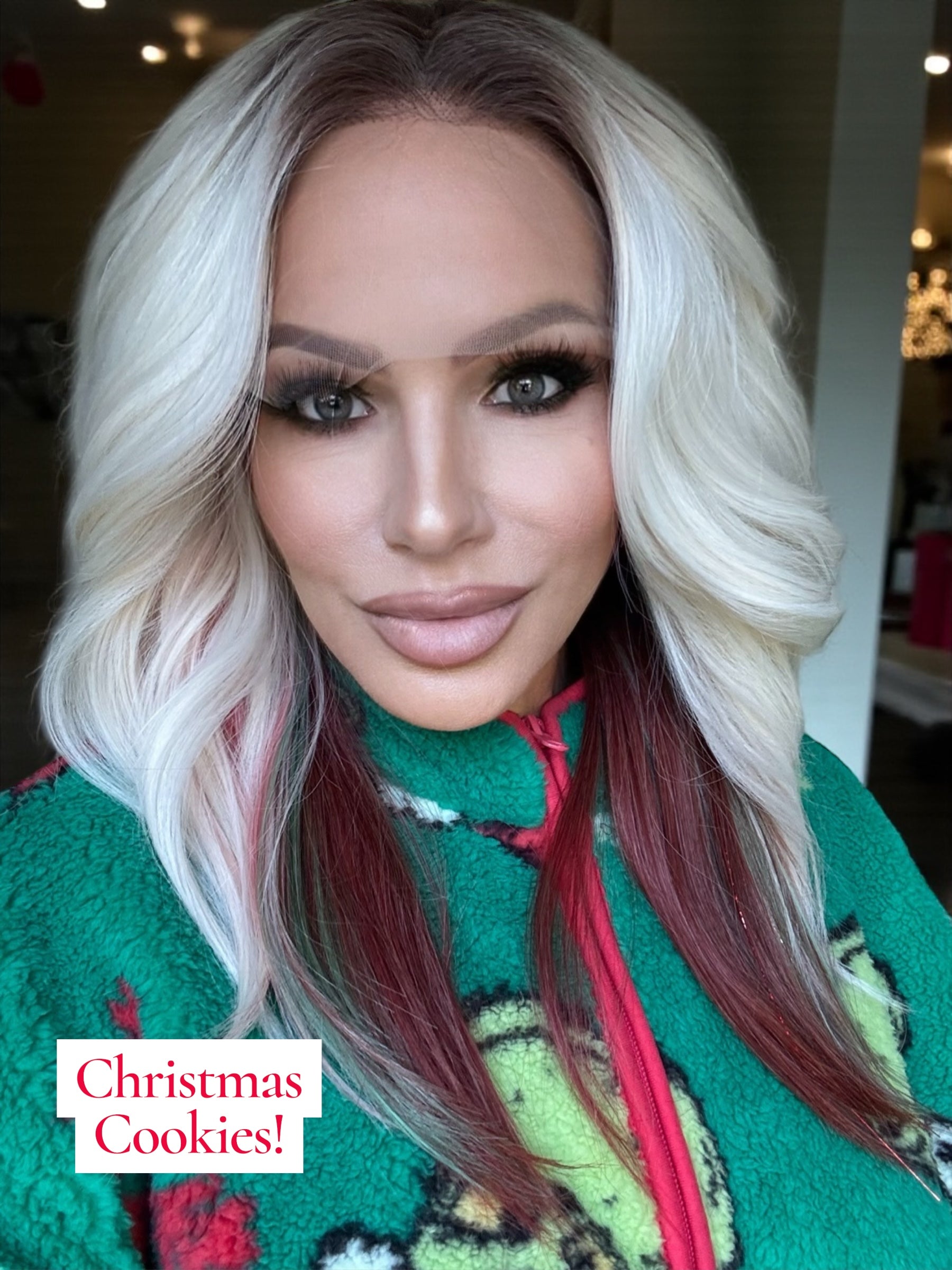 This is not a preorder! It is in stock and customized to order. All will be the same but with unique customization variations . These are hand dyed and tinsel is removable . It is a 13x4 futura fiber heat resistant wig. If you would like more tinsel please email us . If you would like teal or black added please email us . If you have any specifications we can try to add them let us know . Such as dying just the tips red . Half red half green etc.