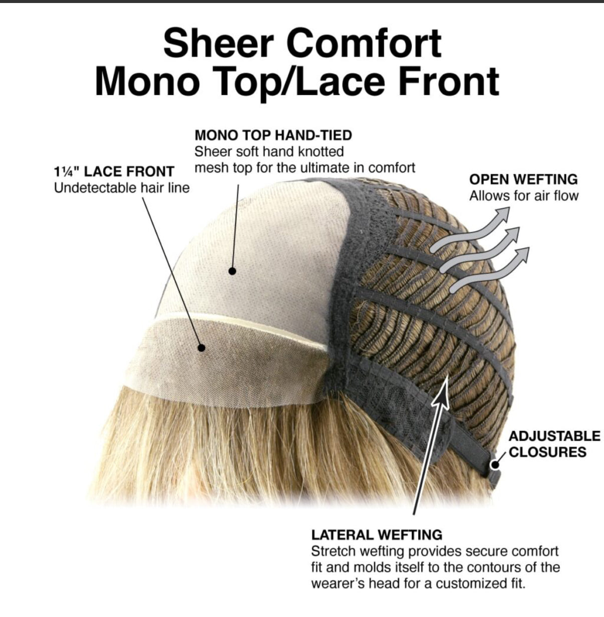 Say goodbye to bulky heavy wigs and hello to everything you ever wanted in wig. Feather light silky strands of hair that is so light it moves when you do. Feather swept bangs that perfectly hand knotted top and an undetectable hair line that can part anywhere or brush.