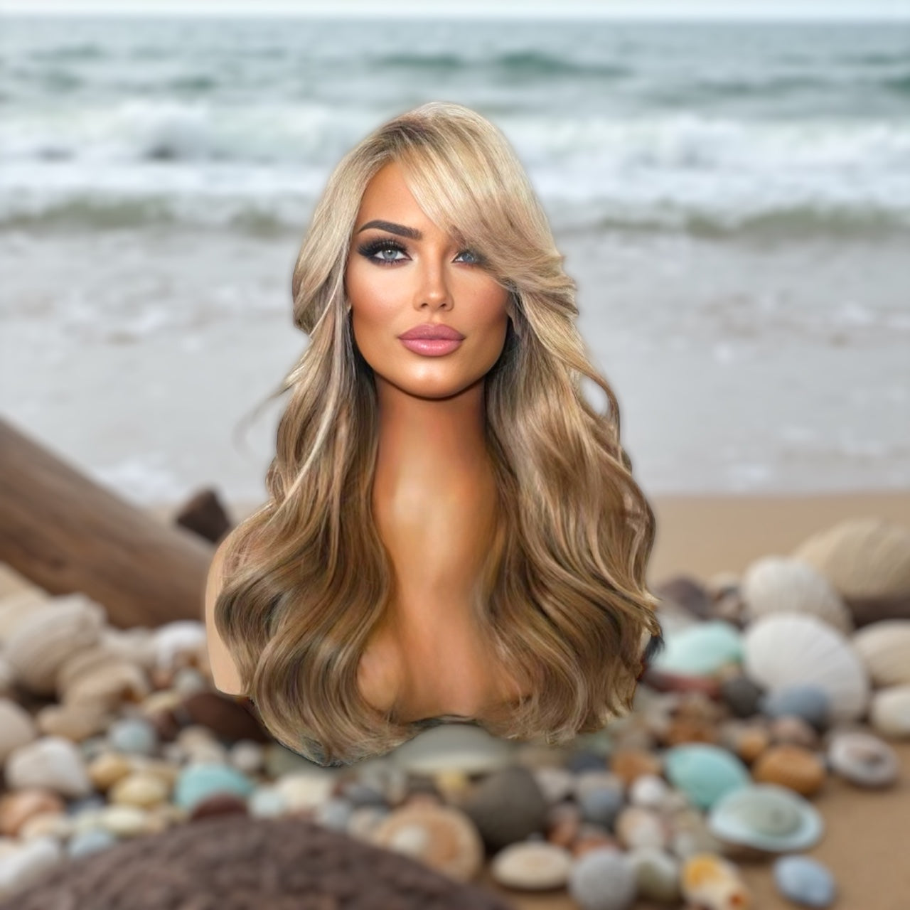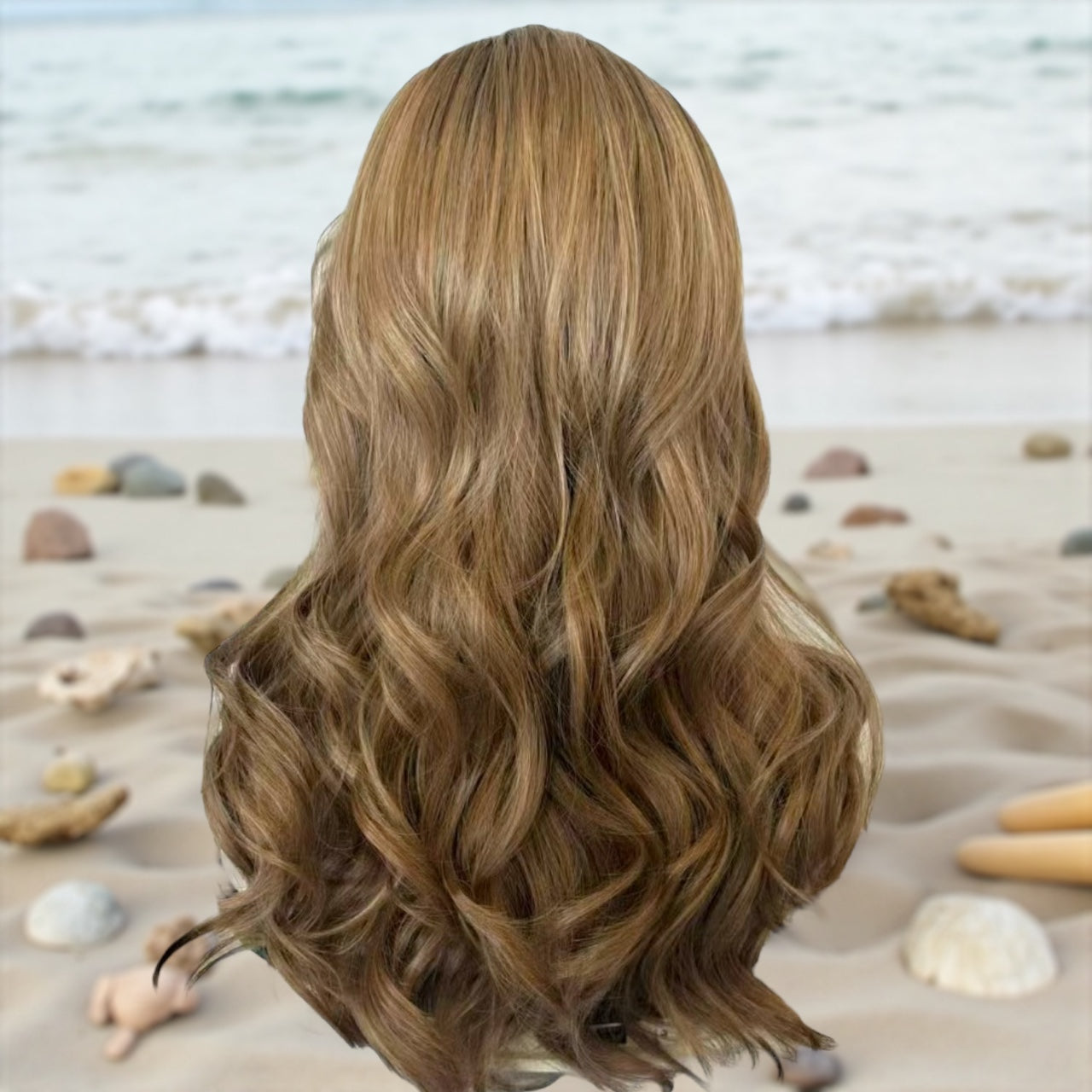 Experience the FINN wig, crafted with a 13x4 lace front for versatile, natural-looking parting. Made from premium heat-resistant synthetic fibers, it features 24-inch loose curls with stylish curtain bangs and layered waves in a stunning light brown and blonde blend. The standard cap size includes adjustable straps for a secure, comfortable fit. Finished with custom Aqualocks technology, FINN offers durability and ease of styling, making it an expert choice for a flawless, long-lasting look.
