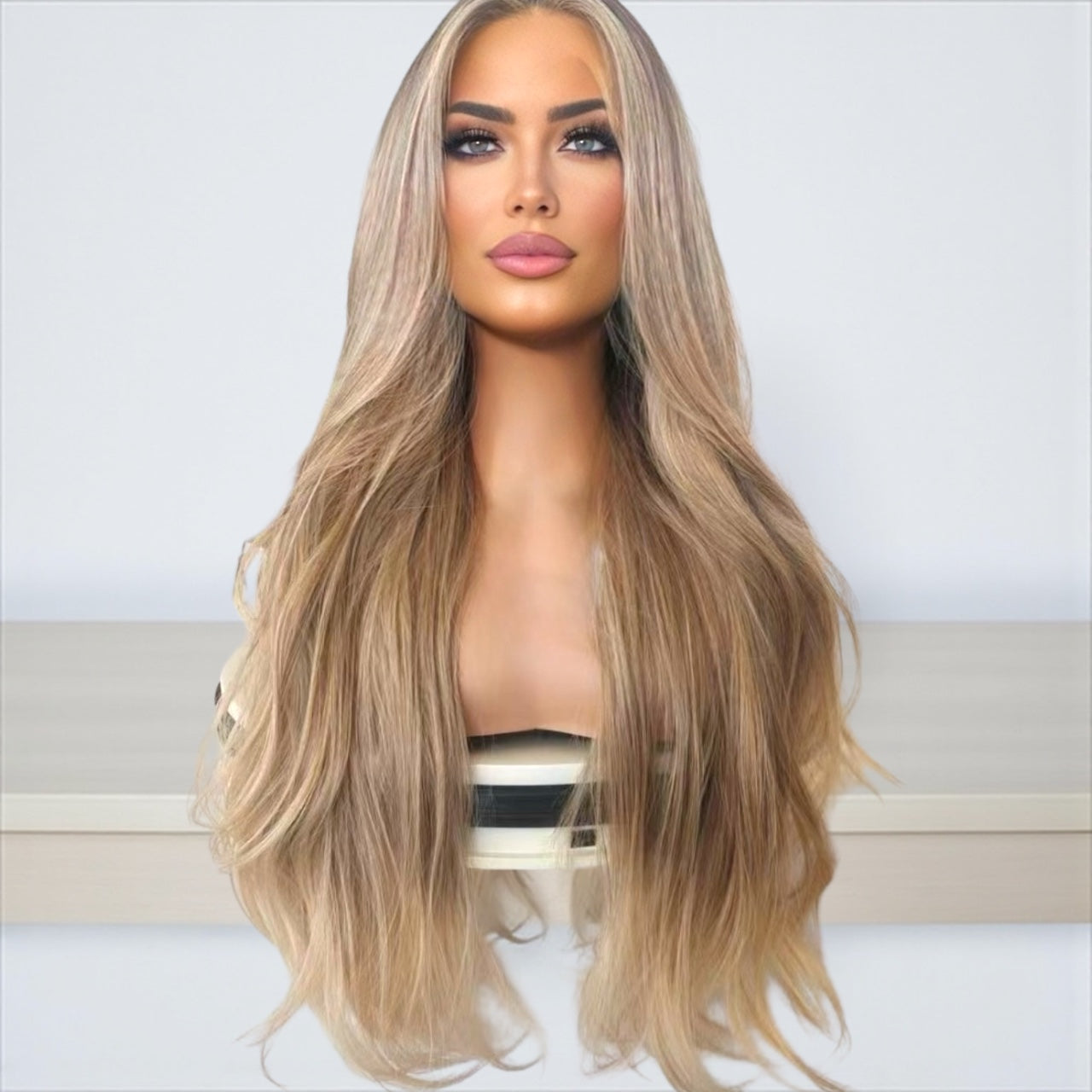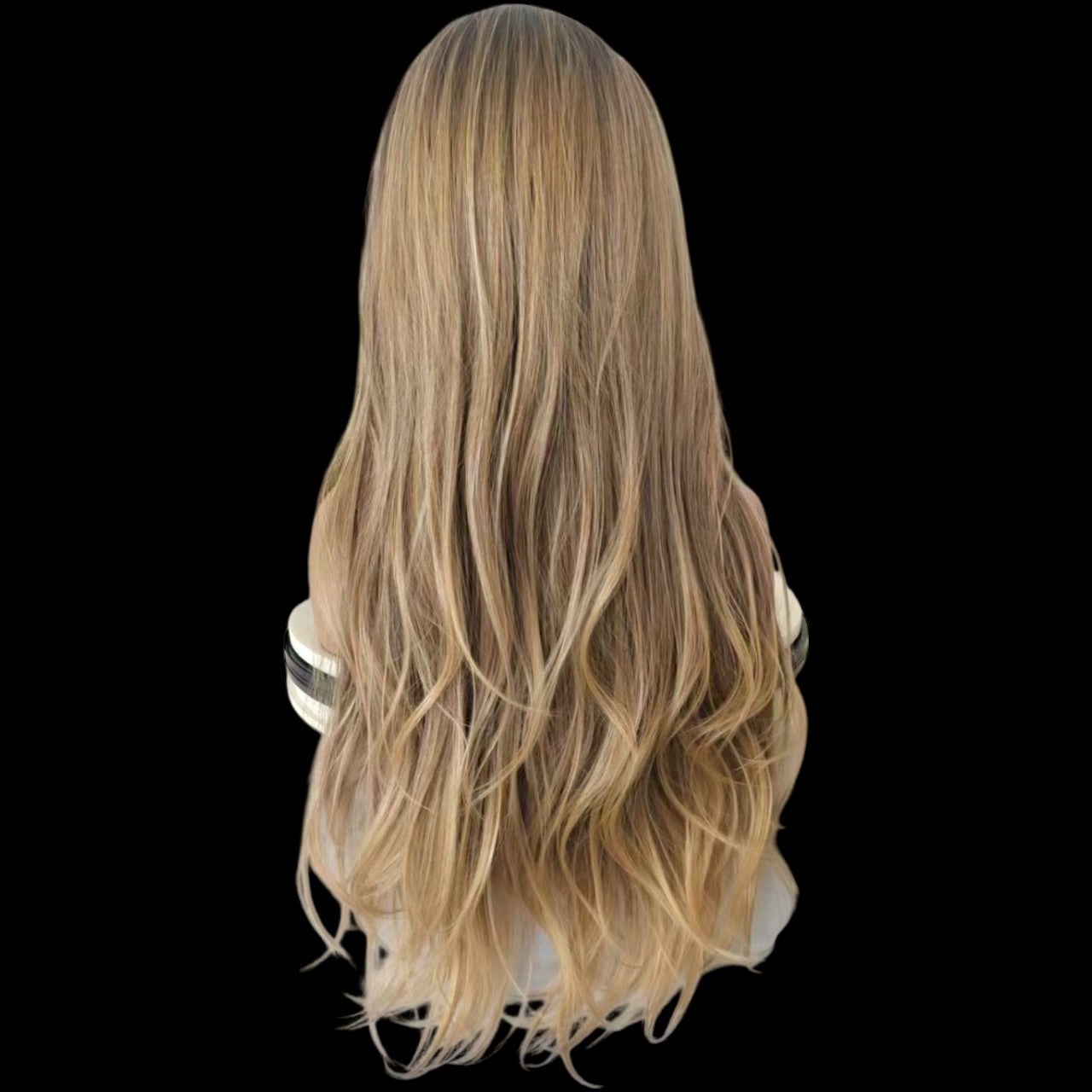 The Laney wig features a 13x4 lace front with a free part, allowing versatile styling options. Crafted from premium heat-resistant synthetic fiber, it offers durability and the ability to style with heat tools. Measuring 26 inches, its loose curls cascade in long layers, enhanced by a stunning dark blonde blend complemented by a Scandinavian hairline for a natural appearance. Adjustable straps and a standard cap size ensure a comfortable, secure fit. Custom Aqualocks technology adds moisture retention and shine, making Laney a sophisticated choice for an expert look.