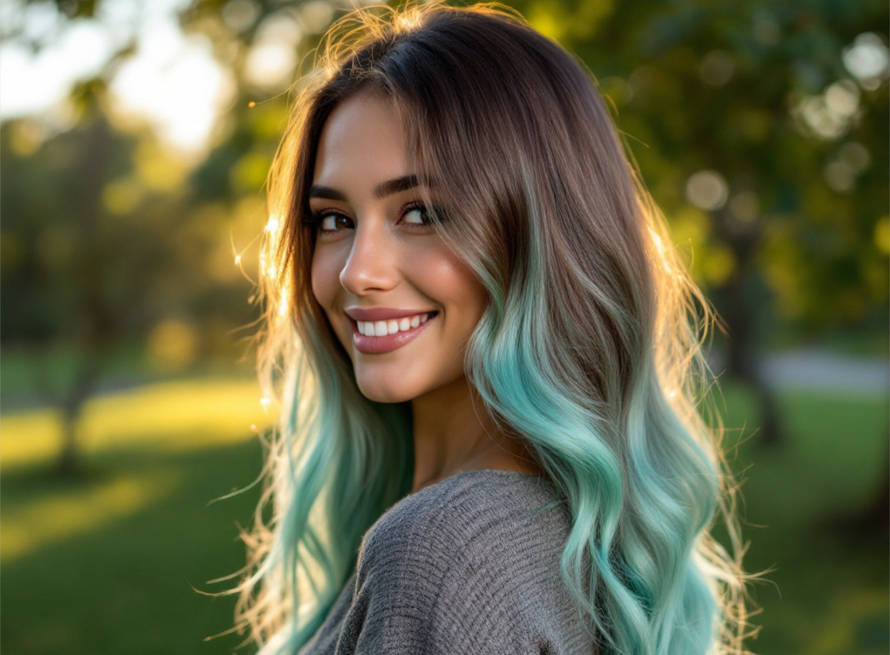 Color: Brunette dipped in a delicious mint green