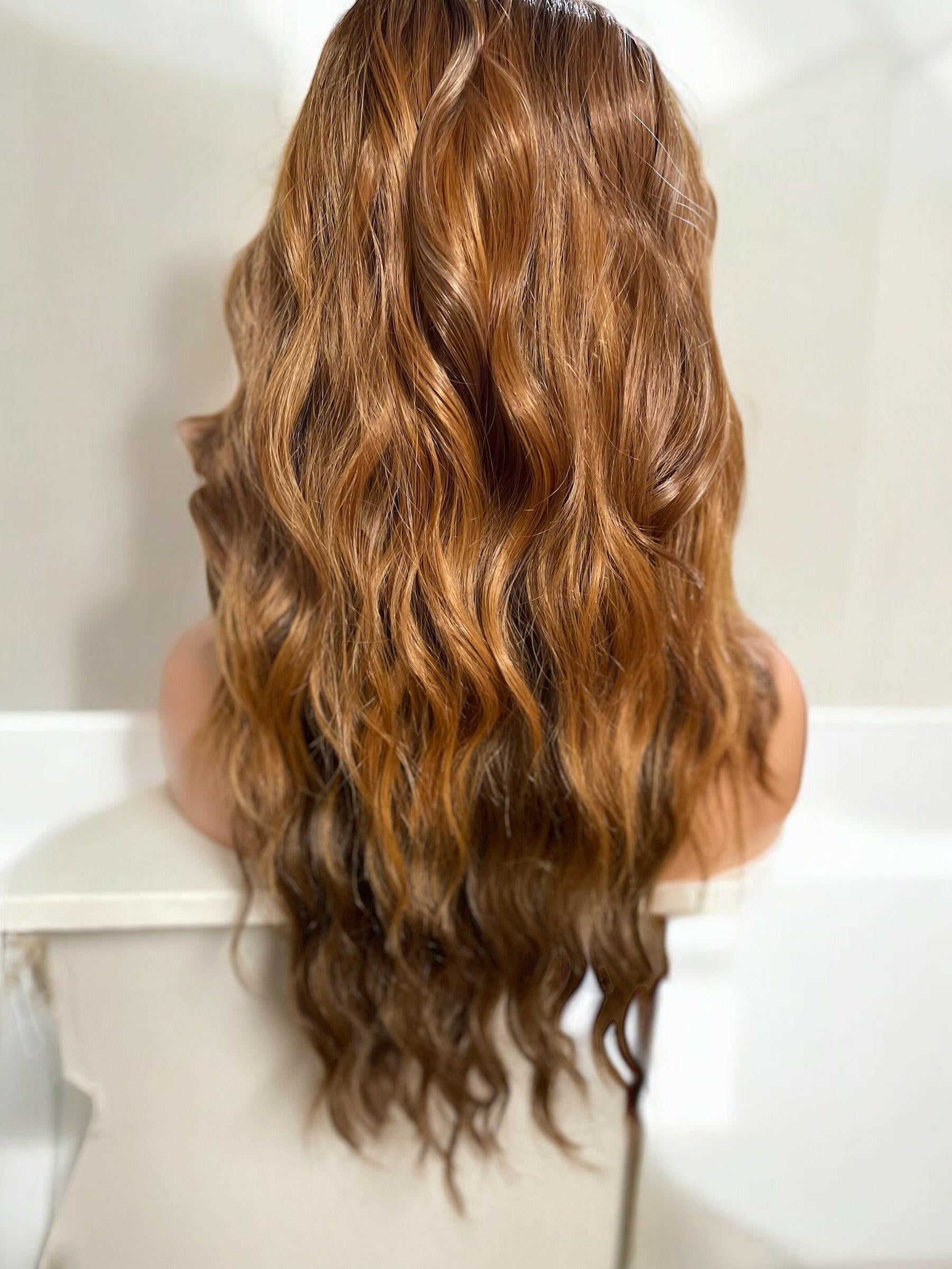 Meet Phoenix, she isn’t just a wig; it’s a statement of bold elegance and effortless beauty, perfect for those who want to make a fiery impression. The rich, dimensional copper base evokes the fiery brilliance of a sunset, while the deep brunette underlayer adds a grounding, sophisticated depth. Blonde face-framing highlights bring a radiant, sunlit touch that brightens and elevates your look. Together, these colors blend seamlessly to create a vibrant, multidimensional effect reminiscent of a phoenix emerging with renewed vigor.