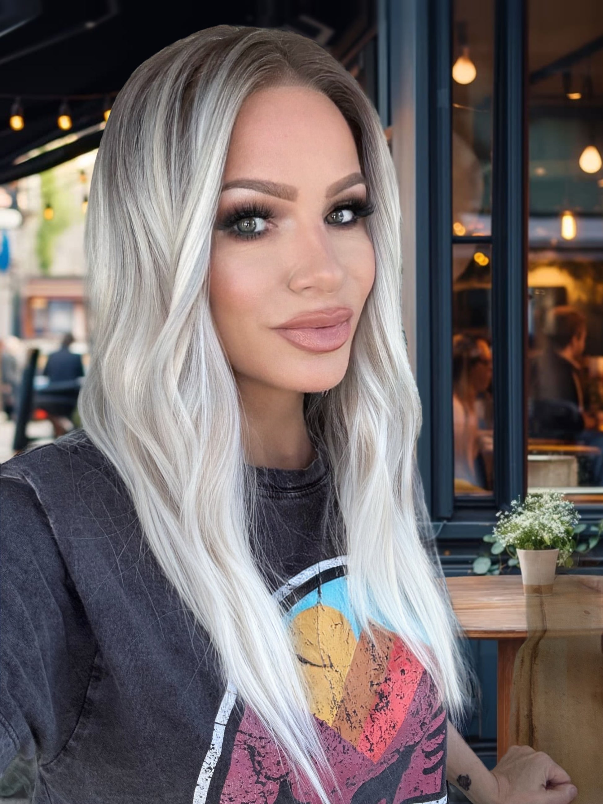 Color: Color: Iced Latte BlondeCool, creamy, and full of attitude—this high-contrast blend features a soft ash brunette root that melts into icy platinum strands with
